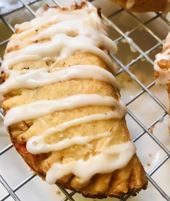 Step 6: Using a fork, drizzle the lemon-vanilla glaze on the cooled hand-pies. Serve and enjoy.